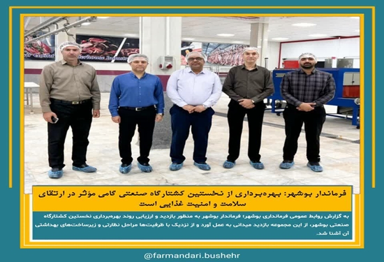 فرماندار بوشهر: بهرهبرداری از نخستین کشتارگاه صنعتی گامی مؤثر در ارتقای سلامت و امنیت غذایی است.