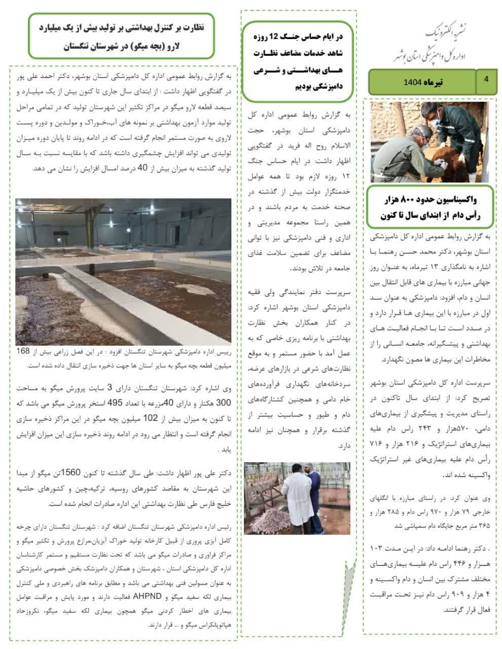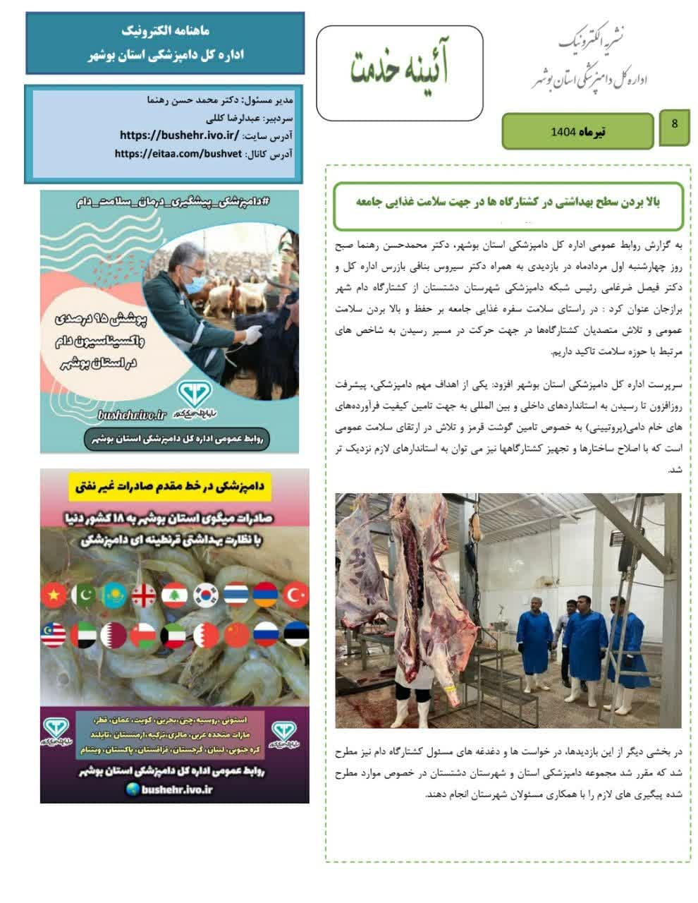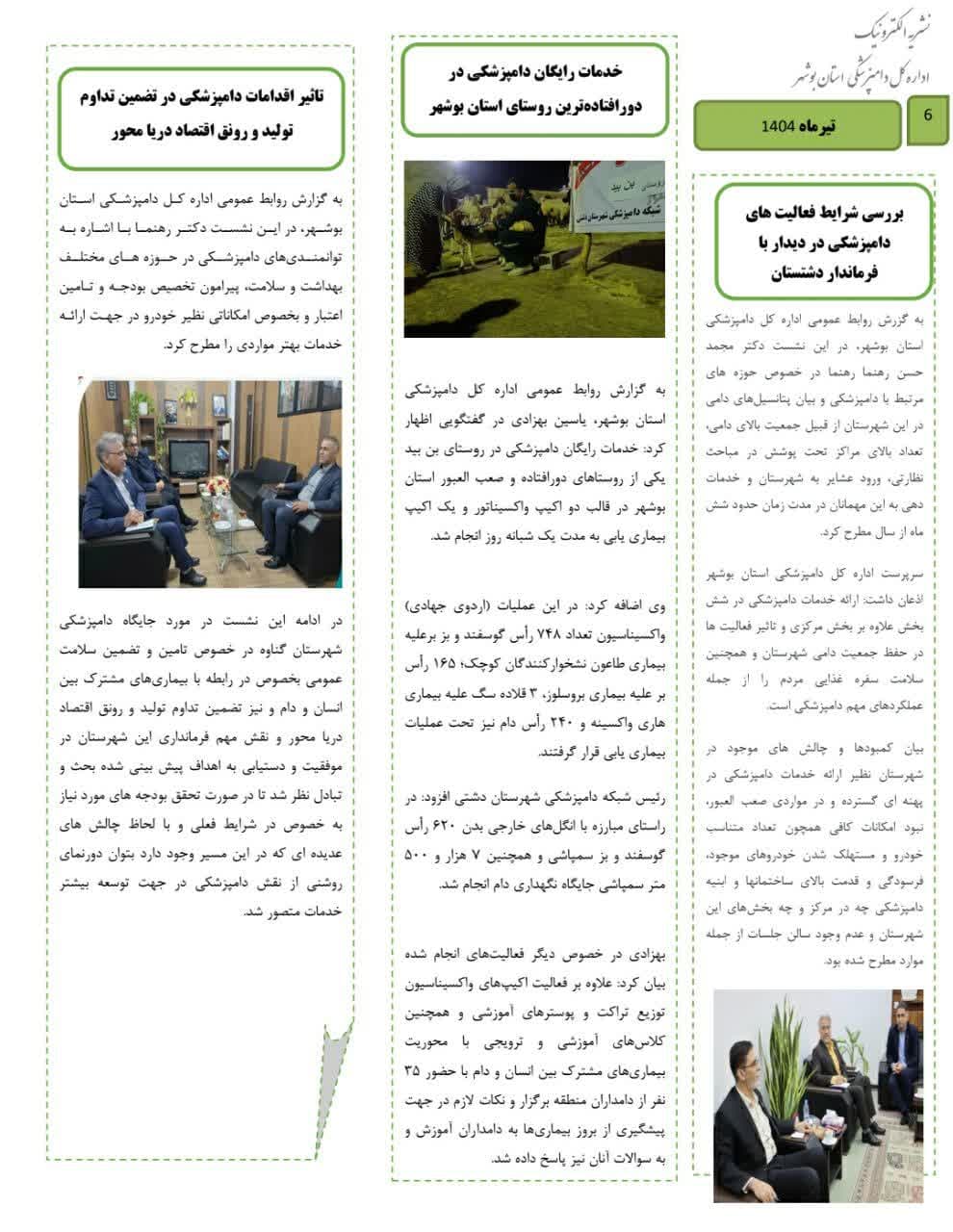 ماهنامه خبری تیرماه اداره کل دامپزشکی استان بوشهر 1404/05/11 - 08:51 - تعداد بازدید: 31 - کد خبر : 343320 - گروه خبری : اخبار شهرستان,اطلاعیه,اخبار اسلایدر,آموزش و ترویج,عکس - تعداد نظرات : 0