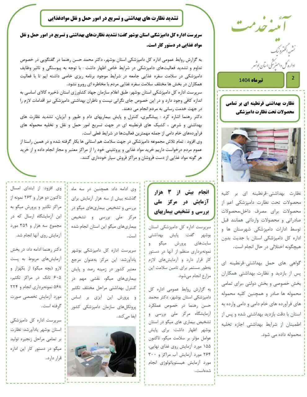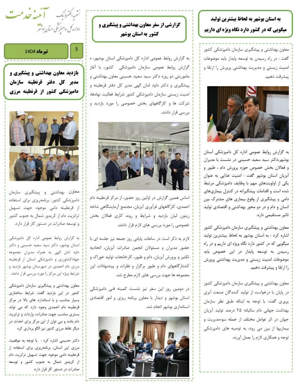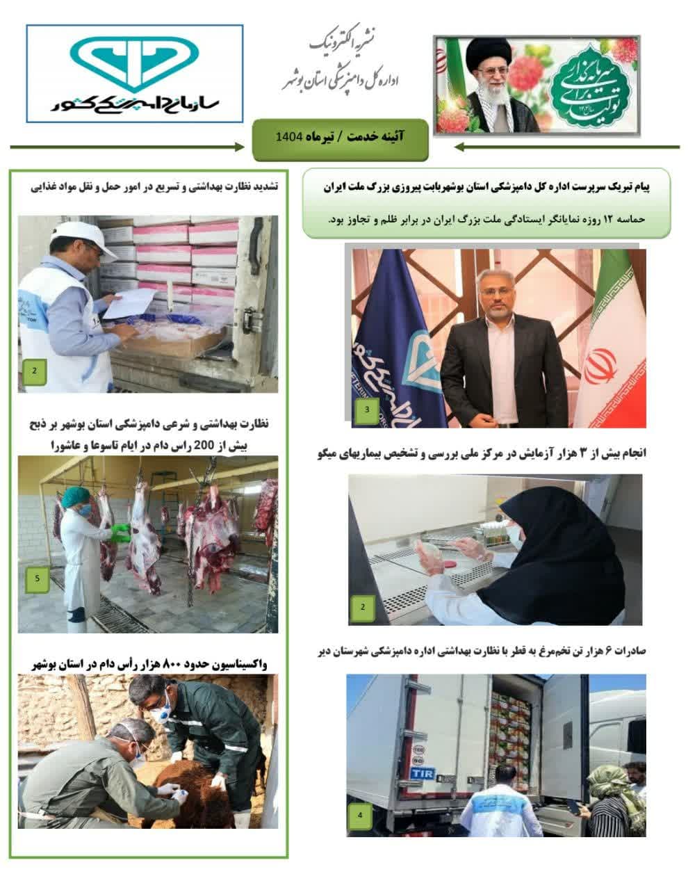 ماهنامه خبری تیرماه اداره کل دامپزشکی استان بوشهر 1404/05/11 - 08:51 - تعداد بازدید: 31 - کد خبر : 343320 - گروه خبری : اخبار شهرستان,اطلاعیه,اخبار اسلایدر,آموزش و ترویج,عکس - تعداد نظرات : 0
